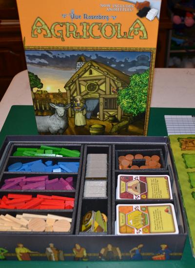 This insert is composed of 4 removable trays. One tray holds the resource tokens and is meant to be placed by the board for easy set-up and tear-down. Another tray hold player pieces for easy distribution. The insert is not designed to hold sleeved cards.