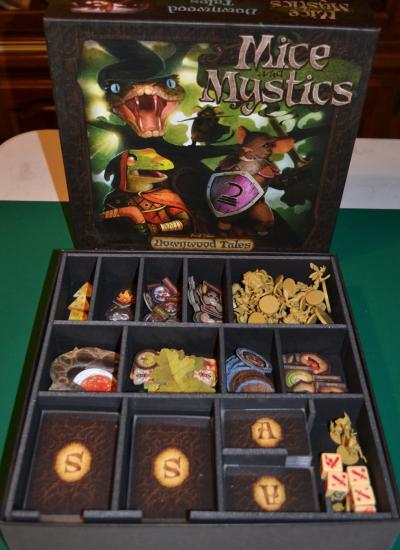 This insert holds the Downwood Tales expansion to the popular dungeon crawl from Plaid Hat Games - Mice & Mystics. The insert is designed to hold sleeved cards. This, newer, version features finger slots on the outside of the insert for easier access to cards.